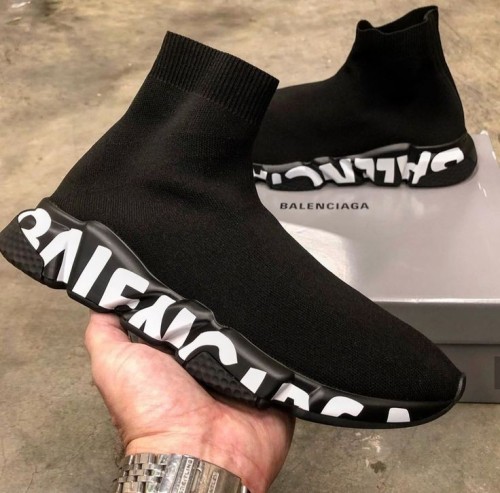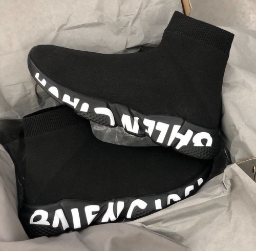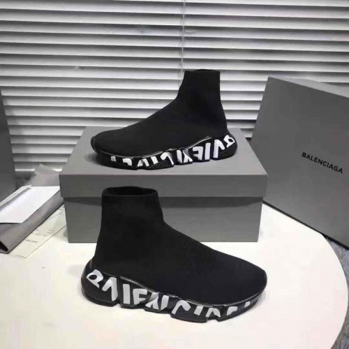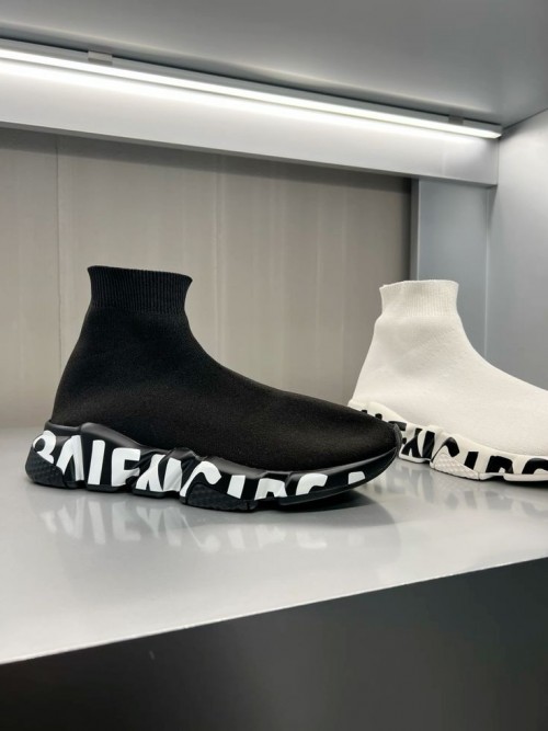 Balenciag a Speed Trainer Black White Graffiti