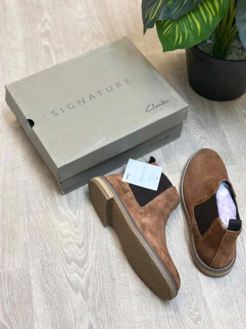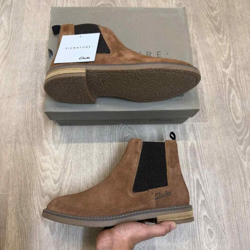 Clarks Signature Premium Suede Leather Chelsea Tan Ankle Boots