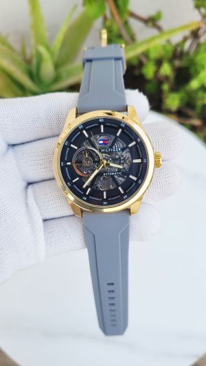 Tommy_Hilfiger Automatic Silicon Belt Grey Gold Black 145