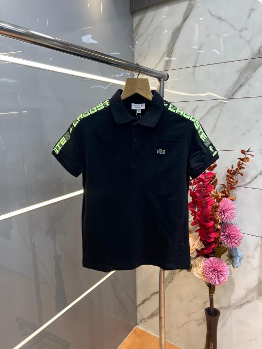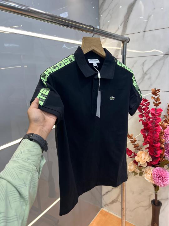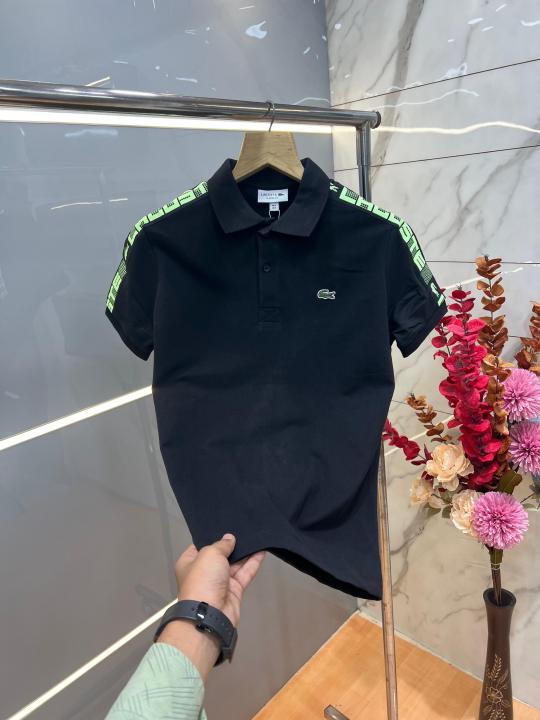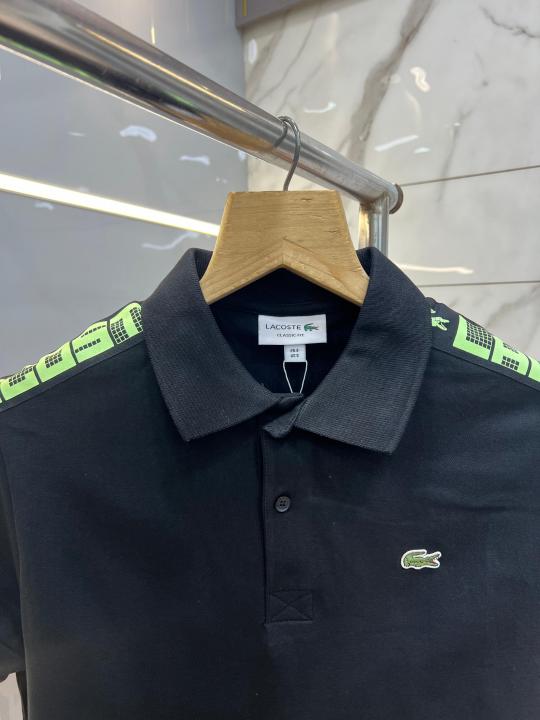Lacost e Black Premium Cotton Pique fabric Polo Tshirt with Shoulder Design and Embroidered Logo 3991