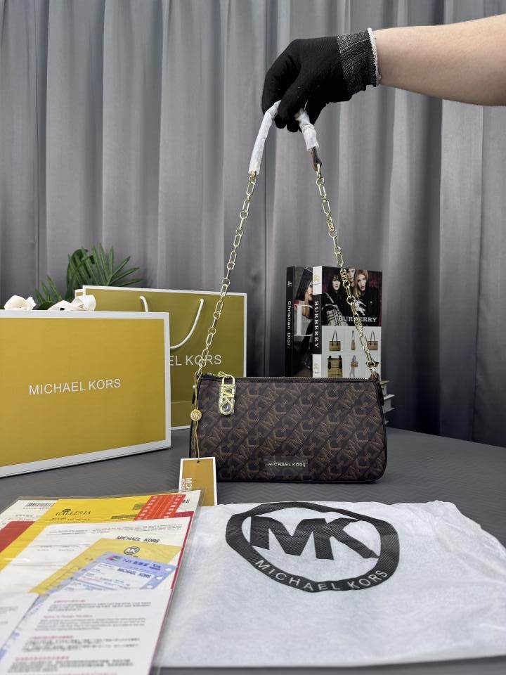 MICHAE_L KORS EMPIRE MEDIUM WITH MAGNETIC BRAND BOX & BILL DUST BAG & CARRY BAG - SIGNATURE LOGO CHAIN LINK POCHETTE - 1088