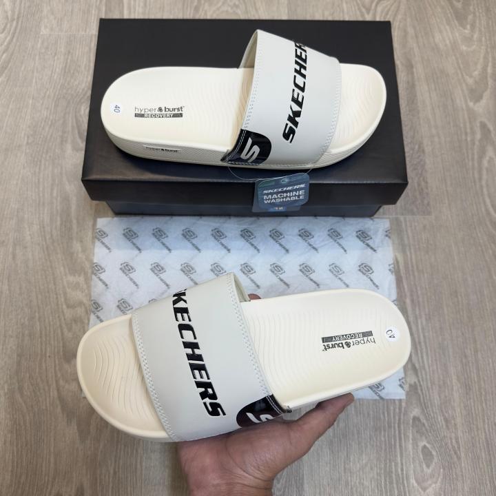 Skecher.s Hyper Burst Soft Premium Cream Black Flip Flop