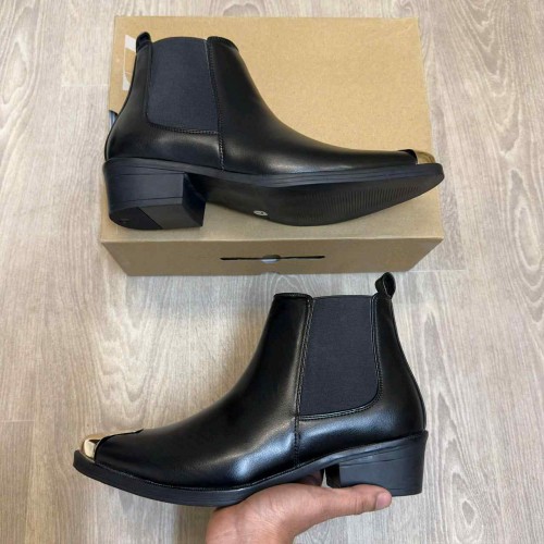 Zar.a Cuban Heeled Golden Toe Chelsea Black Ankle Boots